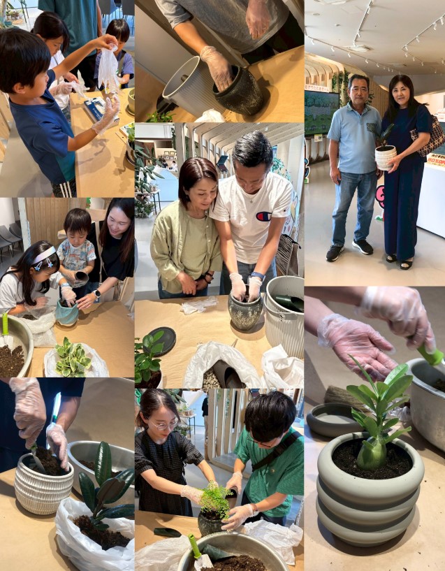 選んだ鉢に土を入れていきます。真剣な表情で作業する方や、ご家族や兄弟で協力しながら楽しむ姿がとても印象的でした!